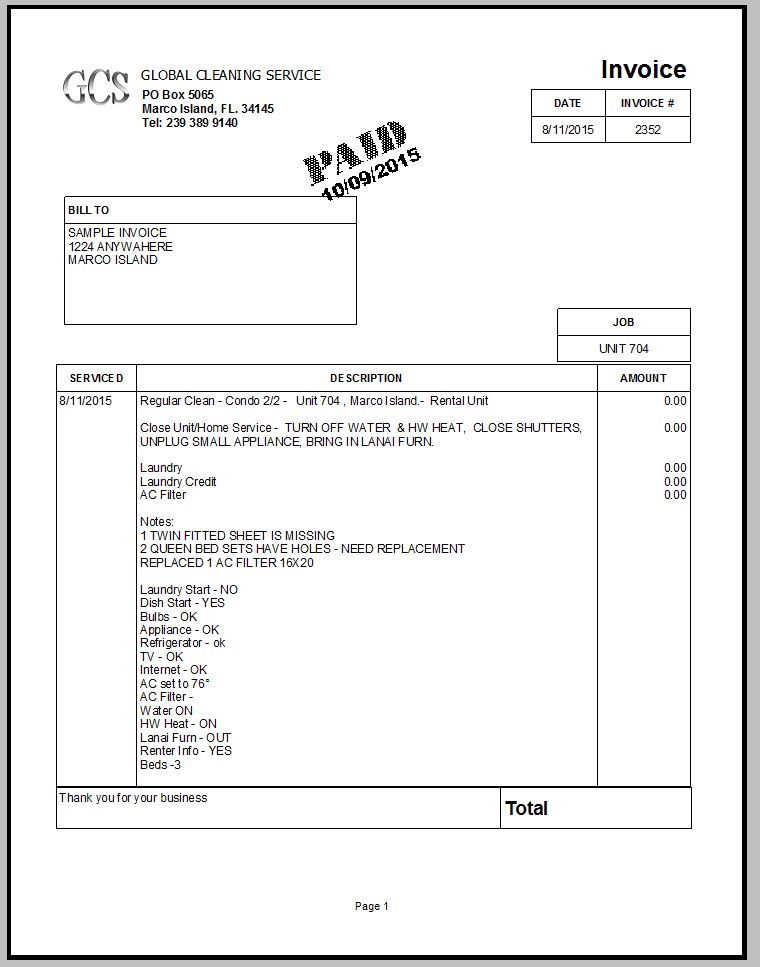 Sample Client Report /  Work Orders